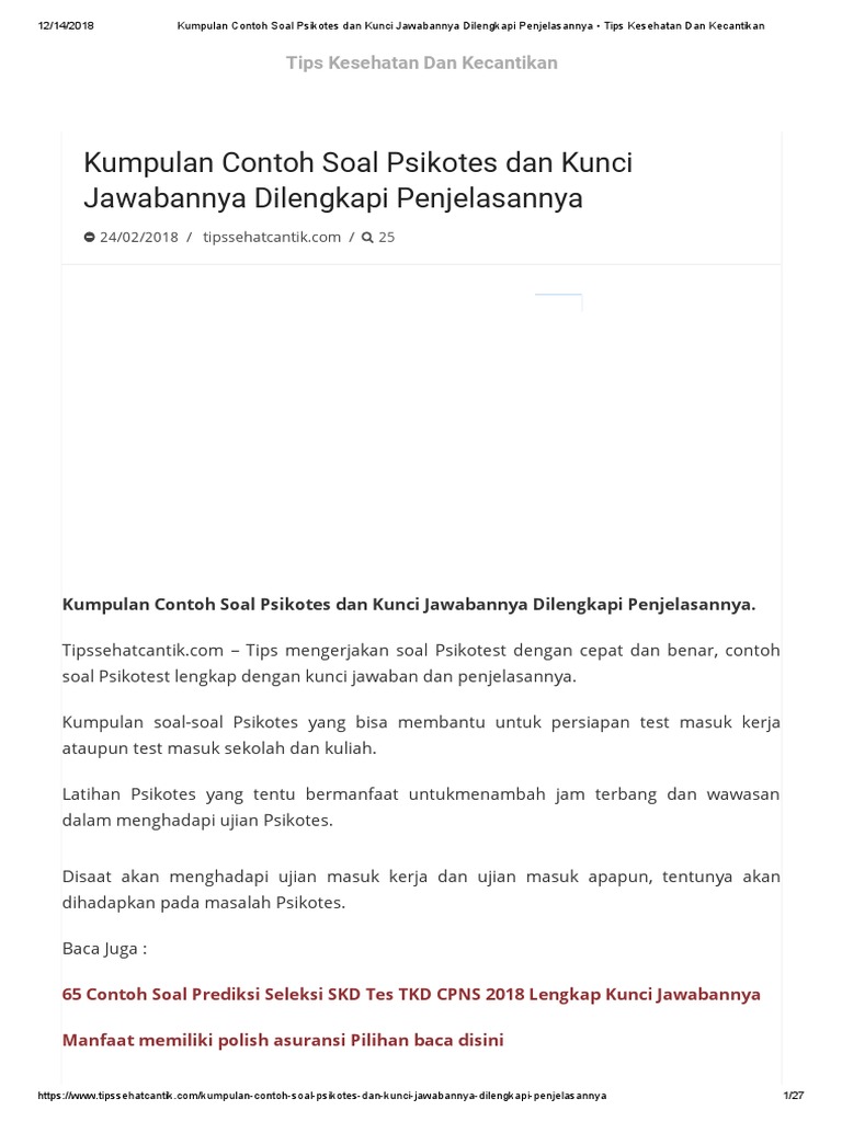 Soal Tes Psikologi Secapa Polri Pdf Jawabanku Id from i.pinimg.com We did not find results for: Check spelling or type a new query. Maybe you would like to learn more about one of these? Contoh soal psikotes sip polri.